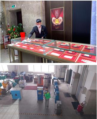 嚴格管理員工出入通道,對返崗人員嚴格實施報備登記、分流入室,避免人群聚集,在辦公樓入口處設專人對進出人員進行體溫檢測、身份核實和信息登記。同時安排專職保潔人員每天定時對辦公場所、電梯、衛生間等公共區域進行清潔,做好垃圾清理、日常通風、消毒等工作,嚴格使用噴霧消毒,并做好記錄。