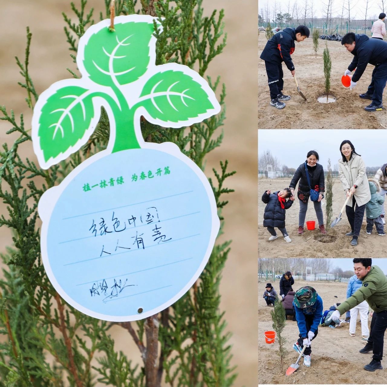 活動當天,員工們熱情高漲、干勁十足,手持鐵鍬、水桶等工具,家庭成員分工協作。挖坑、扶苗、培土、澆水,每一個步驟都飽含著互動的溫馨瞬間。孩子們為親手栽種的小樹掛上專屬“成長牌”,寫下“希望小樹和我一起長高”的童真寄語,讓綠色理念植根心間。