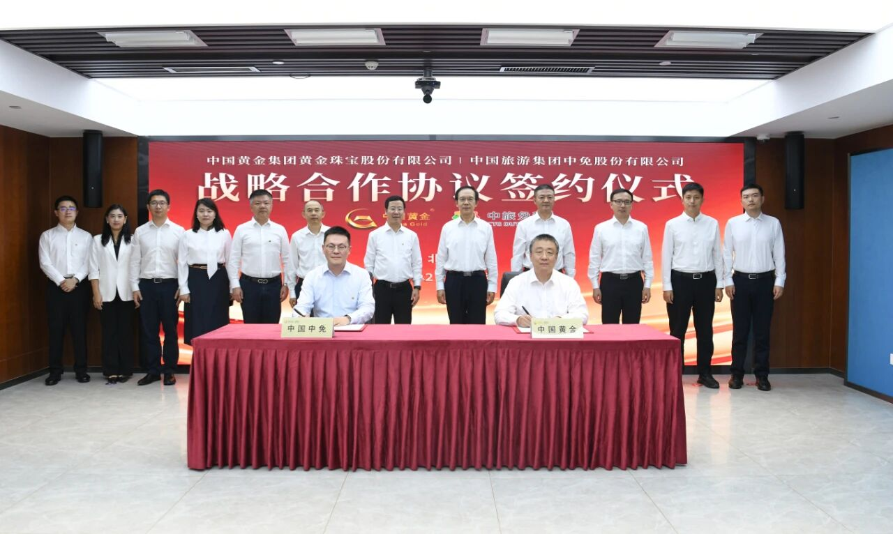 中金珠寶和中國中免有關負責同志代表雙方簽署了戰略合作協議。與會雙方一致同意,將以此次簽約為新起點,充分發揮黃金的文化紐帶作用、免稅業務的全球橋梁功能,以及創新驅動的引領力量,打通文化出海與消費升級的雙向通道,共同拓展全球化發展新路徑,推動中國品牌在國際市場上實現新突破,力爭將本項目打造成為央企協同創新和共贏發展的標桿案例,并在全球消費市場中樹立中國品牌的“黃金范式”。